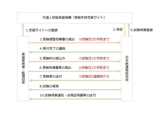 受検料の振込確認後、受検票、受検にあたっての注意事項、実技試験問題(作業試験)について試験日の3週間前から協会より担当者様宛にメールまたは郵送にて送付いたします。